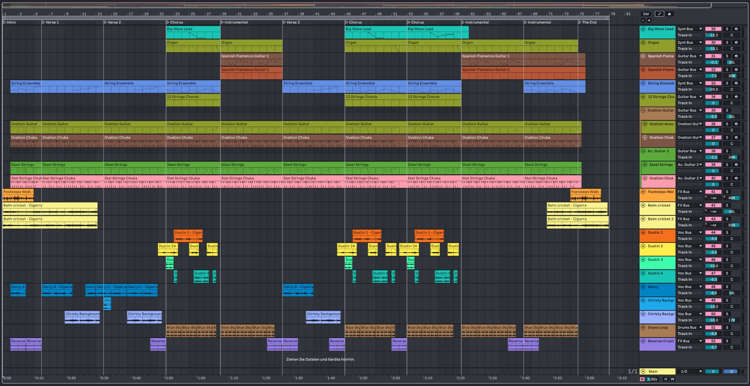| In dieser Ableton Live Suite template verwendete Instrumente sind: Drum Rack, Sampler, Simpler, Operator, Wavetable, Analog, Tension, Electric, Drift. | ||
