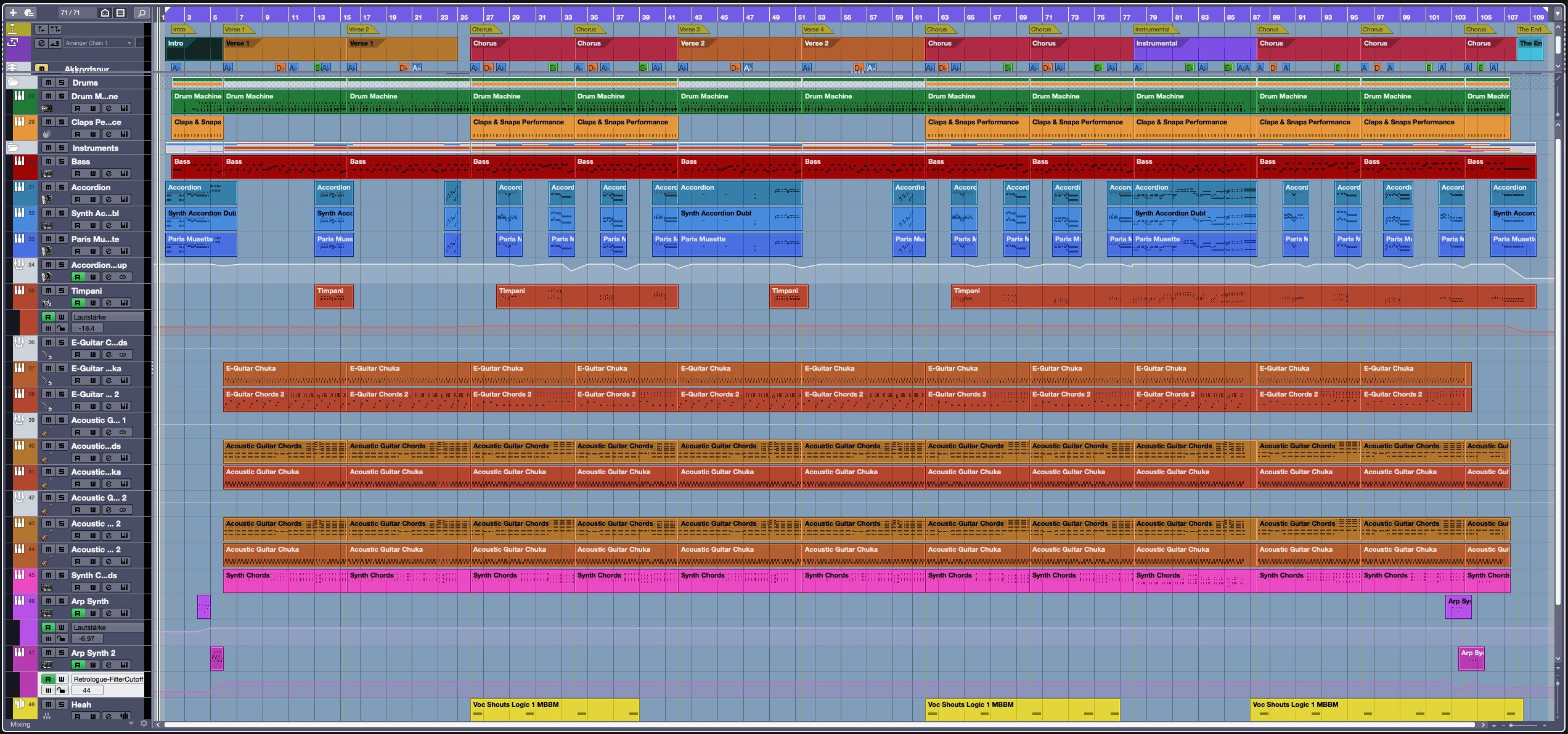 | Automatisierung: Die meisten Spuren verfügen über eine Automatisierung, einschließlich Filter-Cutoffs, FX-Sends usw. | ||