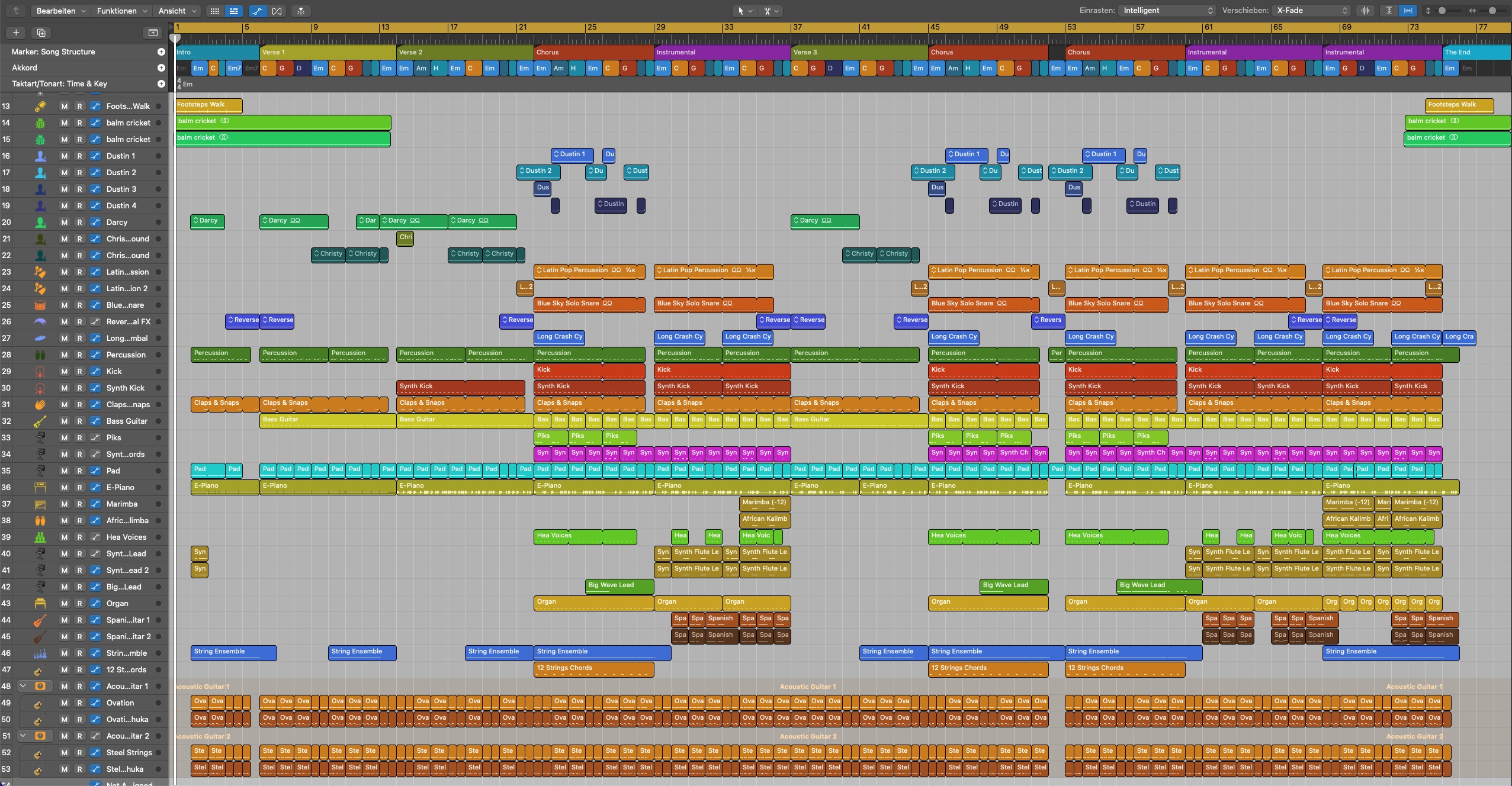 | In dieser Logic Pro template verwendete Instrumente sind: Quick Sampler, Sampler EXS24, Retro Synth, Alchemy, Studio Bass, Studio Piano. | ||